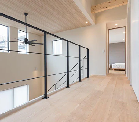豊かな採光と、スペースの有効活用を両立できるスケルトン階段。空間に自然に溶け込むシンプルで繊細なデザイン!