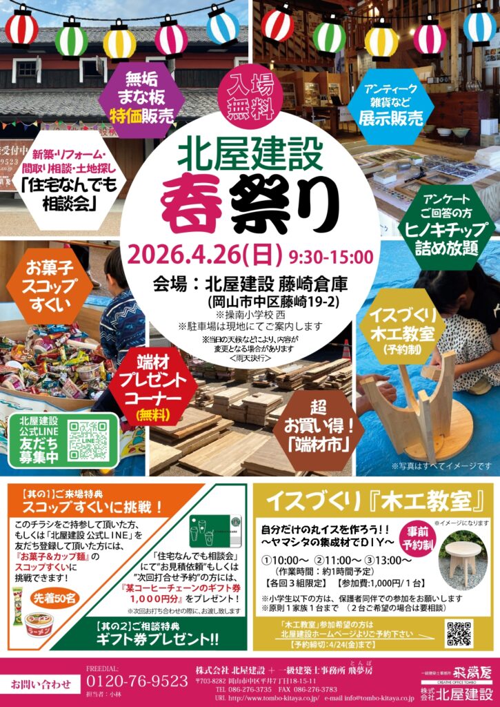 【岡山】R8/4/26「北屋建設春祭り2026」株式会社北屋建設+一級建築士事務所飛夢房【入場無料】