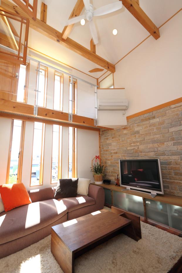 年中、エアコン1台で運営する外断熱で高性能の家!スキップフロアのリビング、大容量の土間収納、多目的に使えるインナーテラス、