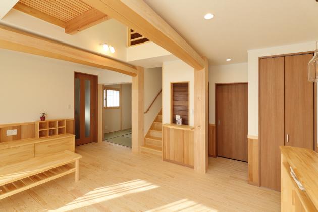 室内には、天然木をふんだんに使い、あったらいいな…の造作を随所に配し、家事効率の良い動線、